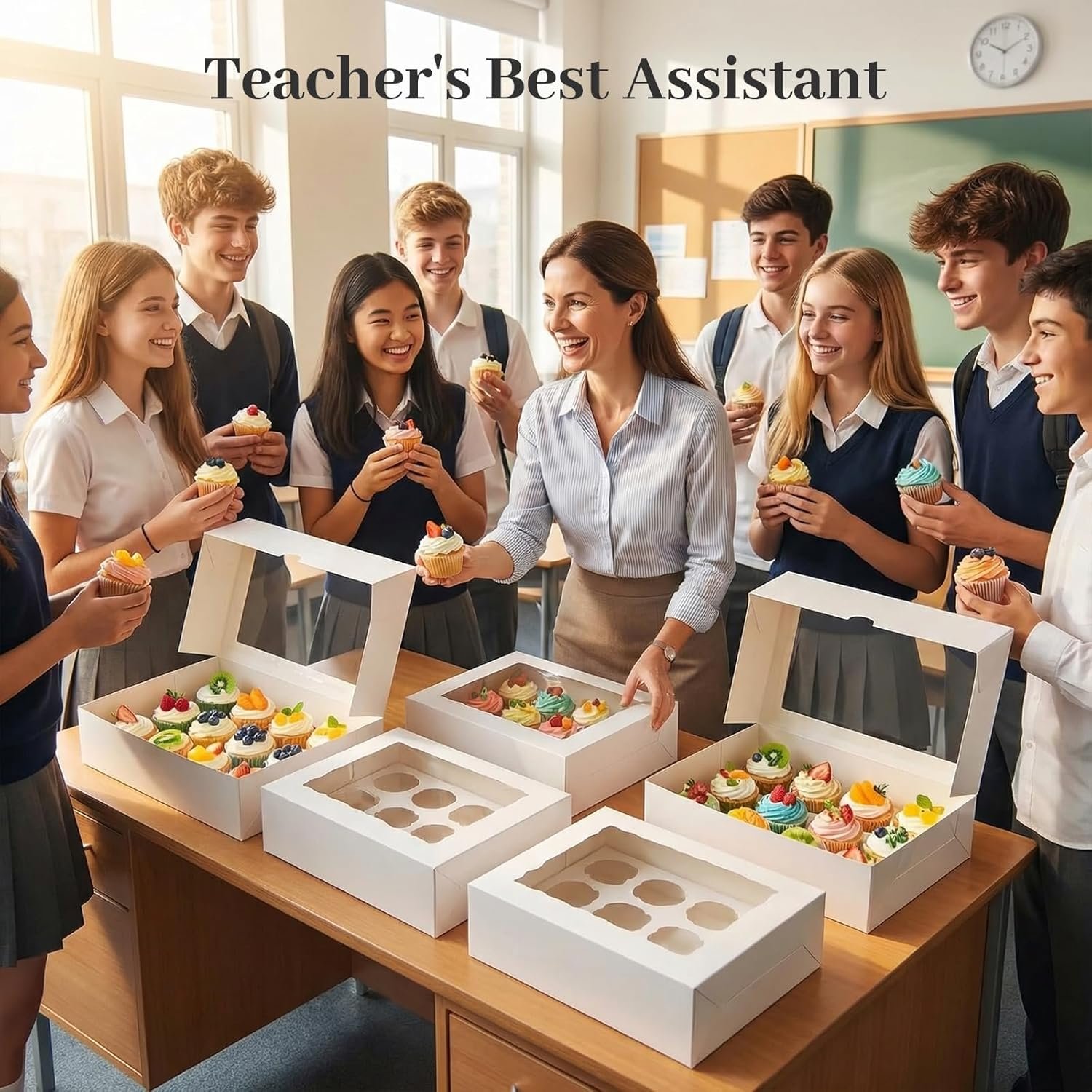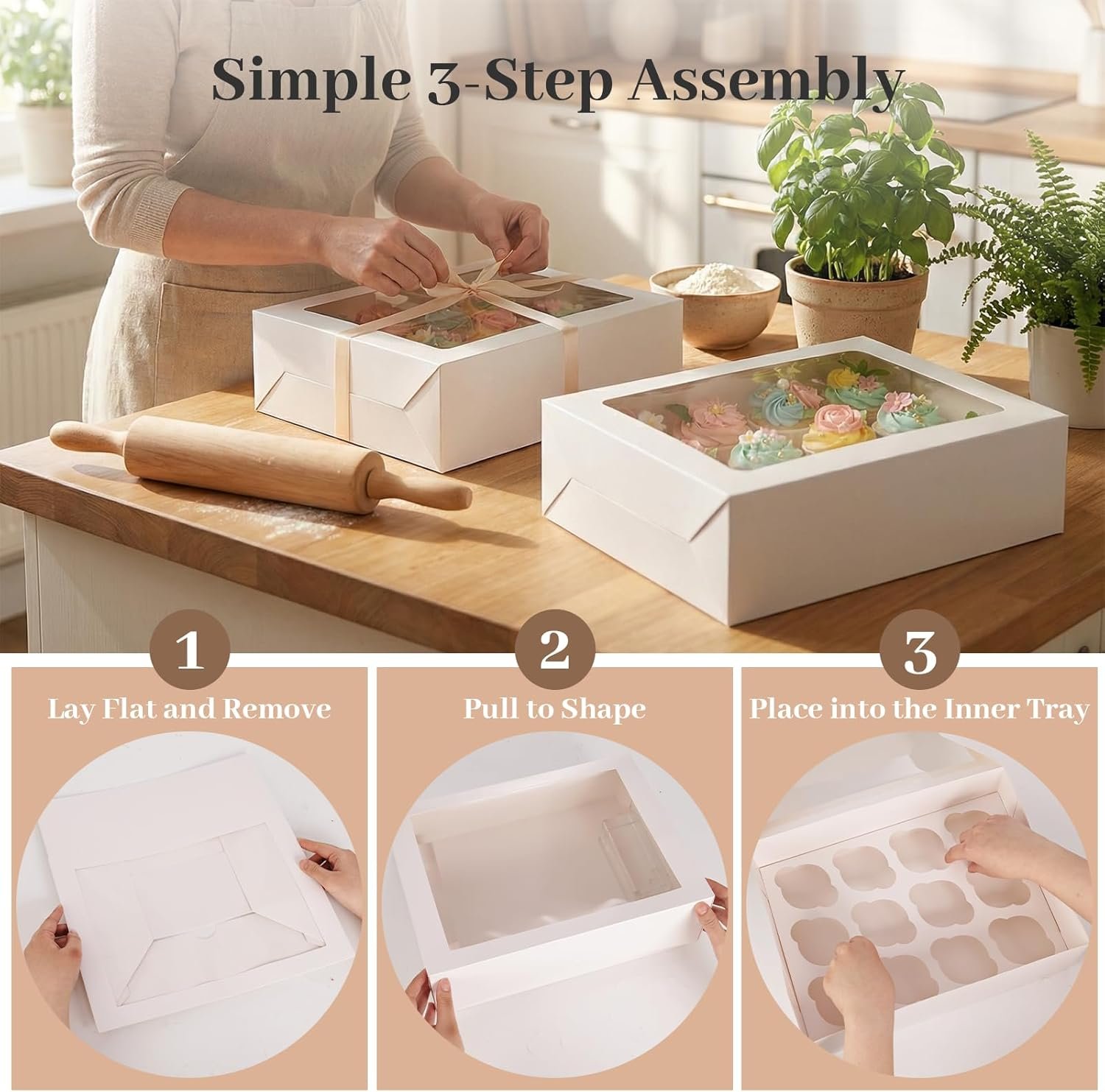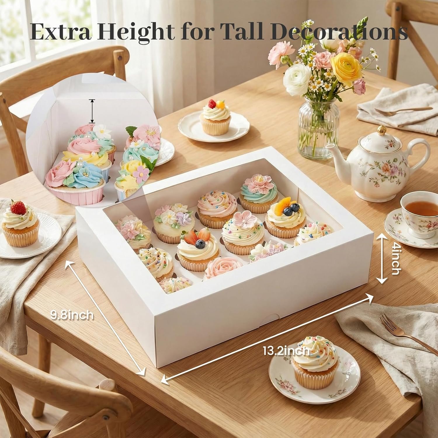 • Ventana Transparente: Muestra tus vibrantes golosinas de Pascua y el glaseado de colores pastel a través de la ventana de alta claridad. El acabado blanco limpio actúa como un fondo perfecto para decoraciones de conejitos y florales, asegurando que tus cupcakes sean el centro de atención de la mesa de postres.