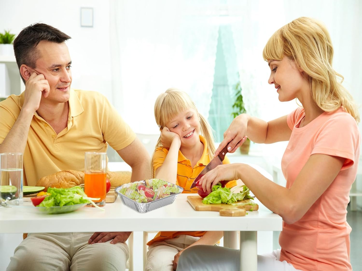 Fabricadas en aluminio de alta calidad, nuestras bandejas para llevar están diseñadas para ser multifuncionales. Puedes almacenar, hornear y servir tanto alimentos calientes como fríos. Las tapas de plástico transparente proporcionan una cobertura segura y clara para tus platillos; puedes ajustar fácilmente el borde de la bandeja sobre el borde de la tapa para asegurar un sellado hermético que mantenga la frescura.