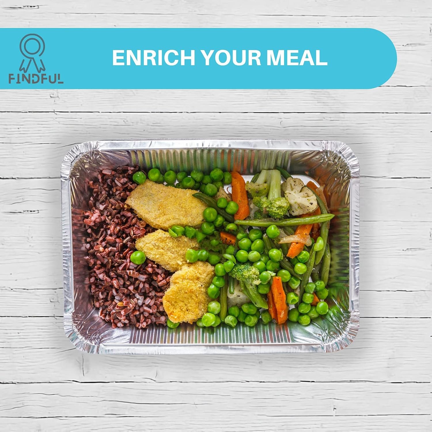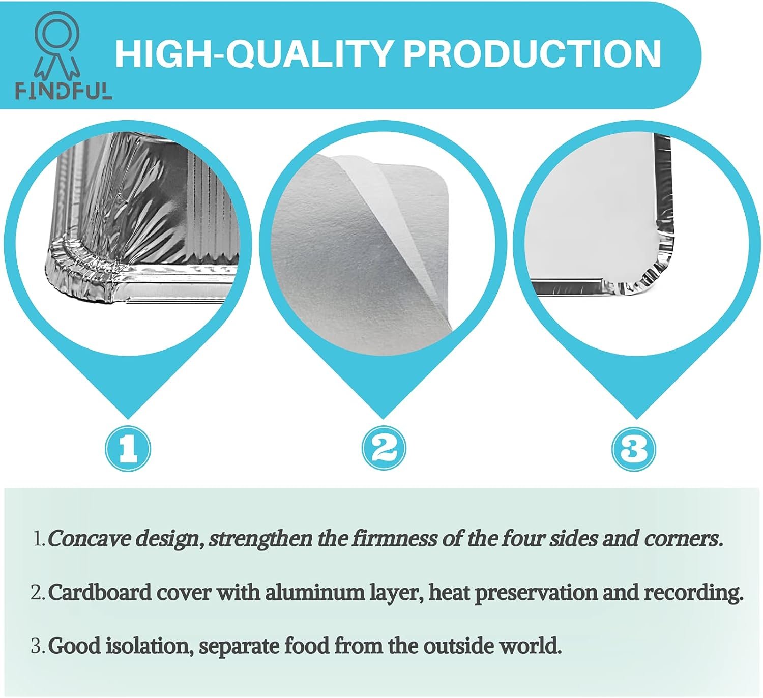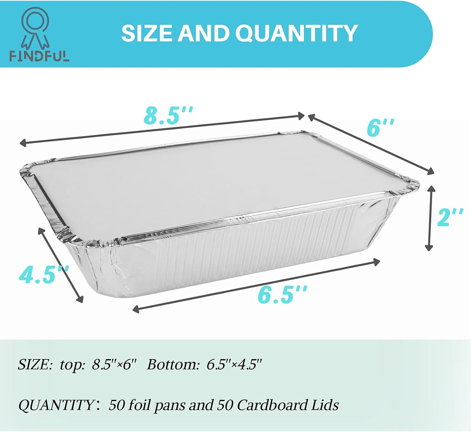 Pans de aluminio con tapa personalizados (Pack de 50, 8.5"×6") - Contenedores de comida de papel de aluminio desechables de 2.25 LB - 50 bandejas y 50 cubiertas de cartón - Ideal para hornear, preparación de comidas y congelador, comida para llevar - Marca blanca del proveedor.