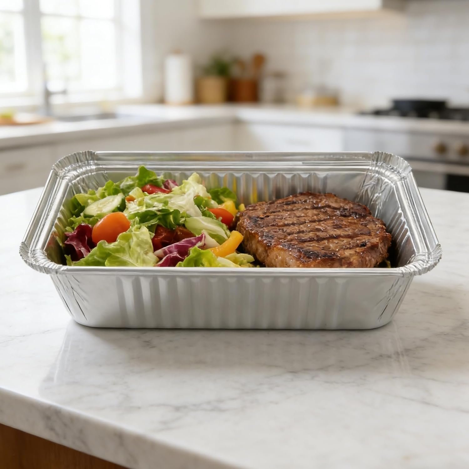 Las bandejas de aluminio con tapas son una solución indispensable para empresas que buscan comodidad y eficiencia en el almacenamiento y la presentación de alimentos. Nuestro pack de 60 bandejas de aluminio, cada una con una capacidad de 2.25 lb y dimensiones de 8.5″ x 6″ y 2″ de altura, está diseñado específicamente para satisfacer las necesidades del sector B2B. Estas bandejas son perfectas para restaurantes, servicios de catering, y negocios de entrega.